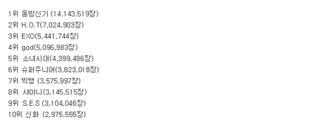 2위 H.O.T(7,024,903장)