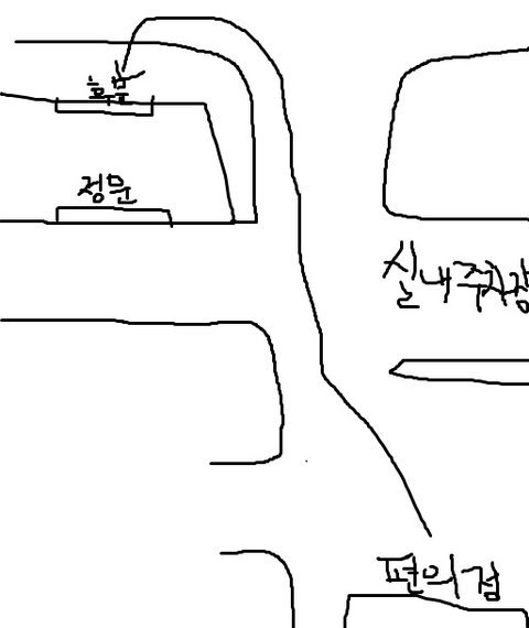 그래서 야 그럼 대신 후문으로 해서 뺑 돌아가야된다. 라고 하고 (원래 편의점 가려면 정문으로 해서 가는게 당연했음)