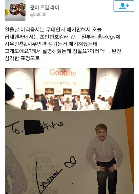 어느분 인스타에 시우민싸인하는 모습 떴는뎅