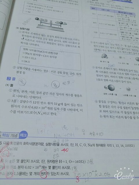 첫번째문제 틀린거..저거 답이 40이라는데 난 아무리봐도 39인것같아..Na가 원자량이 23이고 OH는 원자량16아니야? 더해서 39...왜 40나와?ㅠ