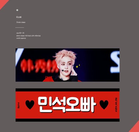 두번째는 색이랑 사진이 강렬하고 섹시한 느낌을 좀 주는것 같고 '민석오빠'라는 문구+진한빨강이 뭔가 가슴을 끓어오르게 만드는 것 같아서 사고싶어.. 또 나이따지면 나한테는 오빠가 맞아서 들고싶은맘같은게 생기더라..