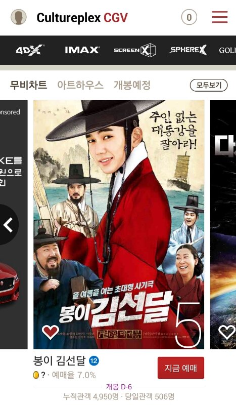 6일것만 전국에서 cgv 36개 극장만 풀렸어