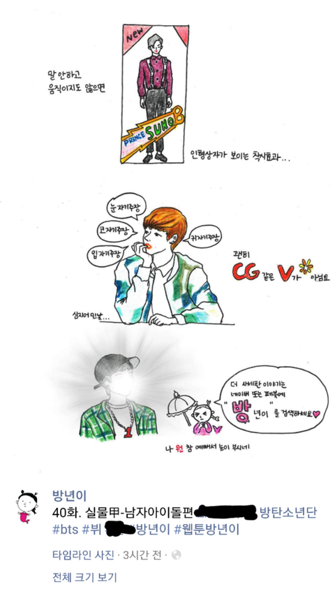 이번에 실물갑 아이돌들 그려주셨는데 태형이가..
