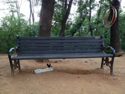 원래 이 벤치엔 제가 앉아 있었는데,볓이 뜨거운지 쪼르르 다리 사이로 들어와서 자리를 잡네요.