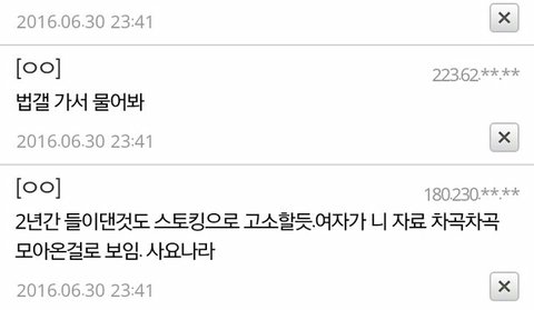 고소하신분 제발 조심하시고 제대로 고소맥여서 해코지 못하게 했으면 좋겠다