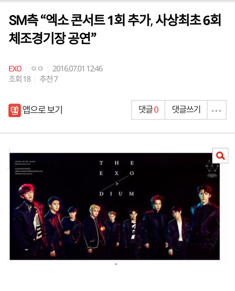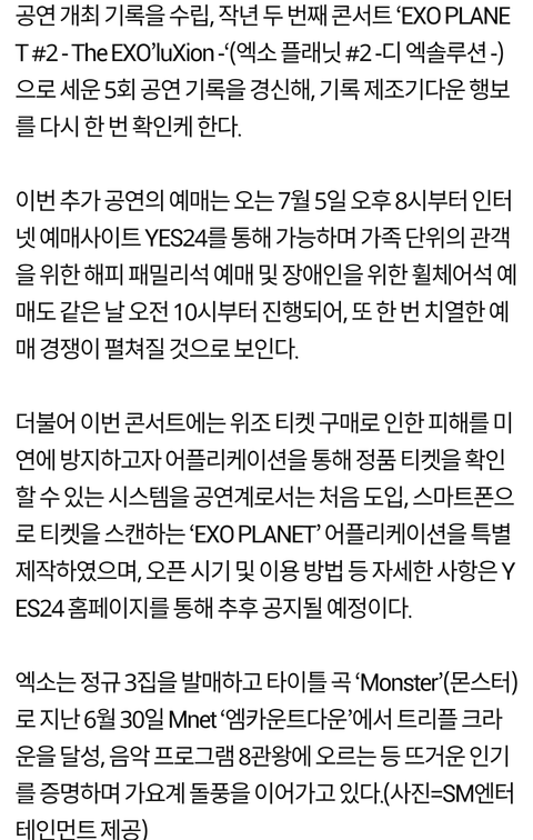 공지 SM측 “엑소 콘서트 1회 추가, 사상최초 6회 체조경기장 공연”
