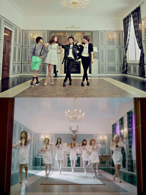뮤비 시작부분인데 바닥 무늬까지똑같고 소품도 비슷해