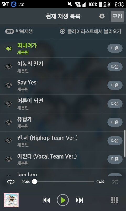 자 이제 스밍을 해야하는데 노래를 어떻게 담아야 하는지 모르겠다면 노래는 총 19곡을 재생목록에 넣어야해 한시간에 한번 집계되니까 어림잡아서 시간 맞추면 19곡정도 넣어야돼 노래 순서는 아주나이스 심플 아주나이스 힐링 아주나이스 끝이안보여 아주나이스 노펀 등등 이 순으로 19곡을 넣어주면 돼