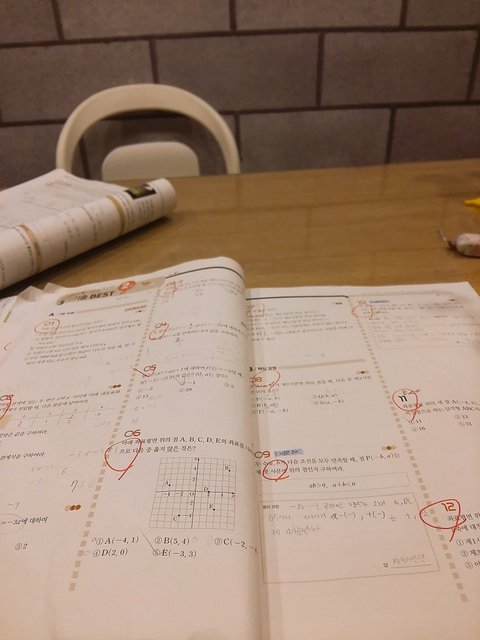 시험은 아니지만ㅎㅎ... 문제집 두 장 푼 거 채점했더니 하나 틀렸어!! 다른 장들도 그랬으면 좋겠다ㅠㅠㅜ