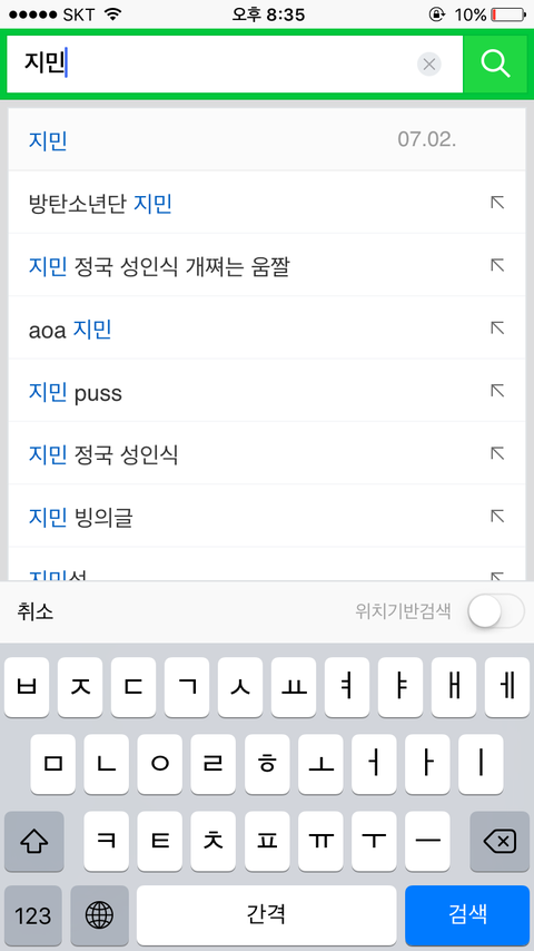지민이 치면 지민이 나온다길래 쳐봤는뎅