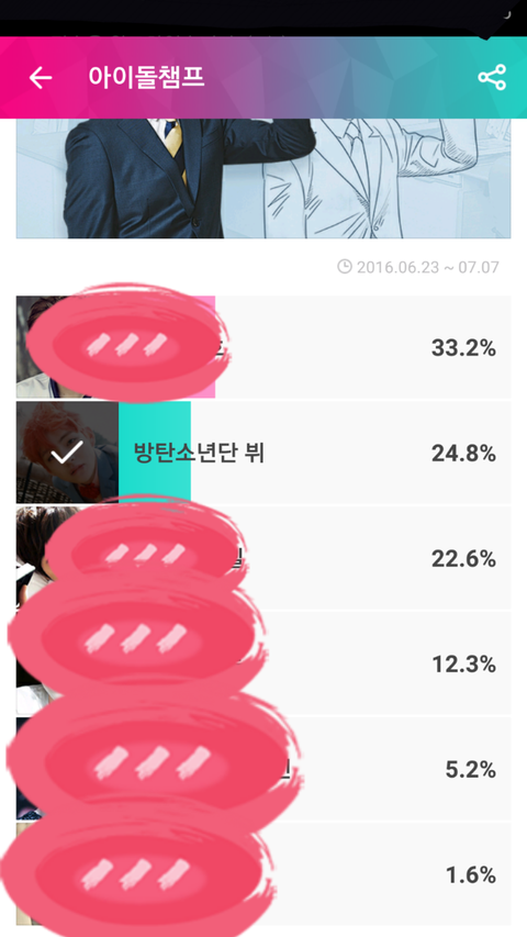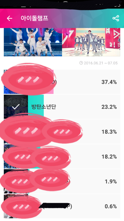 아이돌2챔2프에서 투표 하고 있는데.. 다 2위야