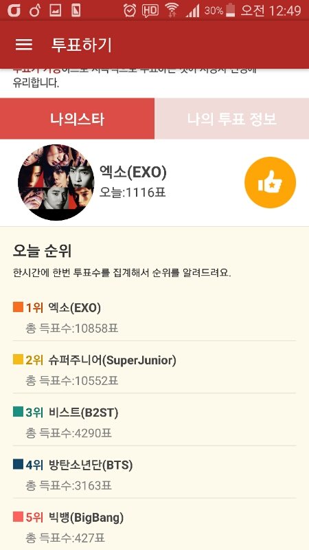 아이스타유깔아서 회원가입후 엑소투표ㄱ