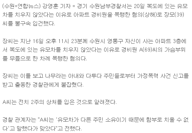 유모차 안 치웠다는 이유로 니킥