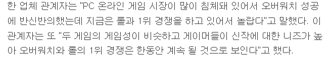 롤과 오버워치 사이에서 설 곳 없는 국내 게임