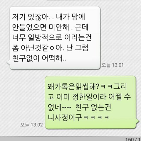 ㅋㅋㅋㅋ문자로 달라붙길래 떼어내버렸지~ㅋㅋㅋ