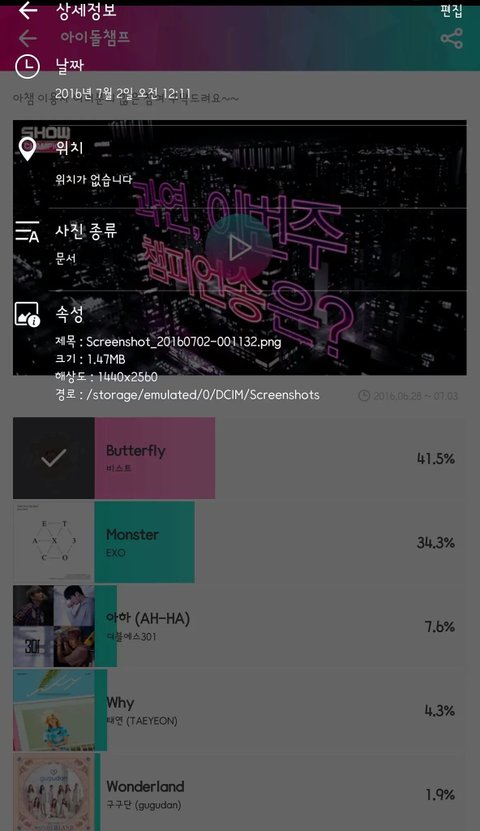 쇼챔피언에서 1위를 하기 위해서는 '아이돌챔프'라는 어플로사전투표가 꼭!!!!! 필요함