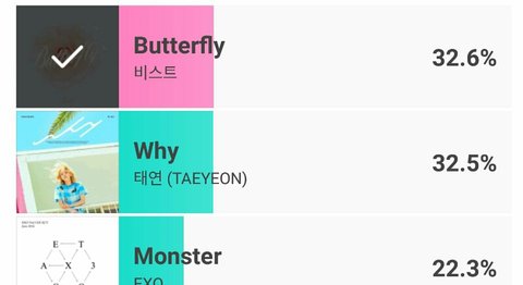 하루만에 2위로 떨어짐2위로 떨어진것도 2위였던 엑소가 1위를 한게 아니라 고작 4퍼센트의 점유율이었던 태연이 1위를 했기 때문.