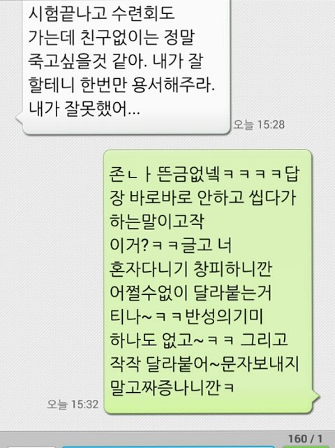 1회 ㅋㅋ문자로 또 달라붙으려하네 ㅋㅋ끈질긴년ㅋㅋㅋ