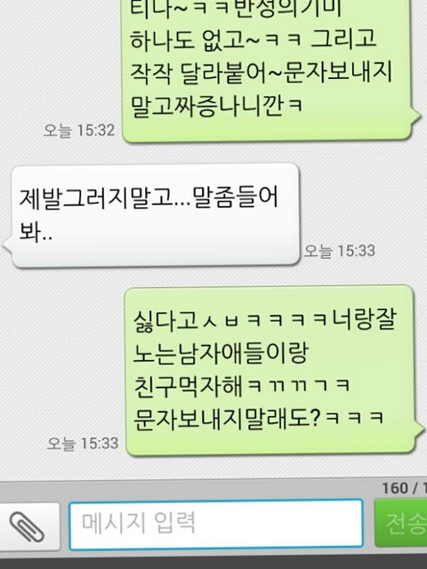 이년 2시간만에 또 달라붙으려 문자날림ㅋㅋㅋㅅㅂ극혐ㅋㅋ