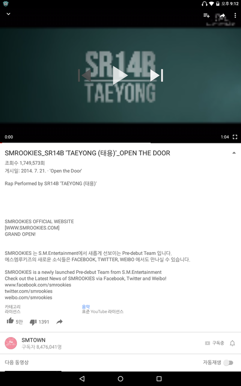 태용이 개인영상 open the door 올린 날이 2014년 7월 21일인데