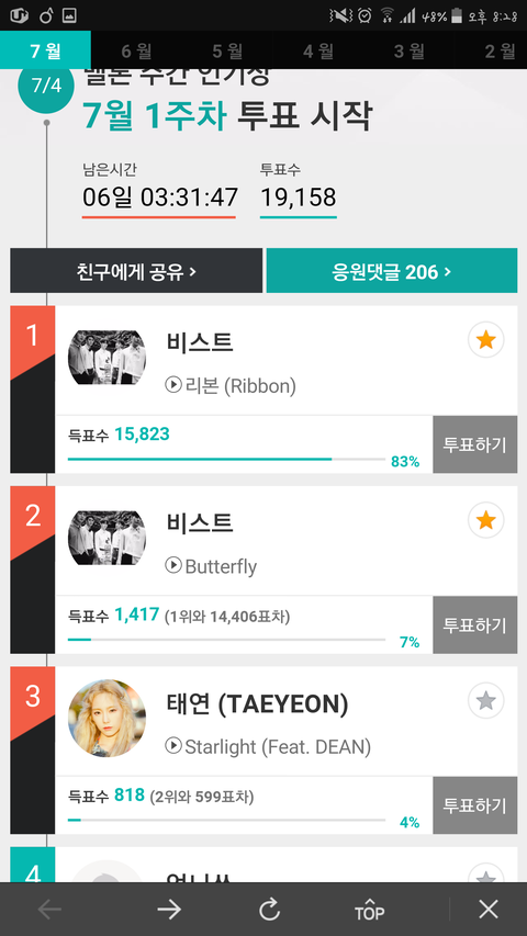 지금 1위 리본 2위 나비 둘다 비스튼데 리본으로ㄱㄱ