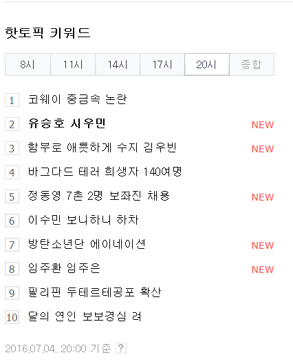 160704 8시 초록창 핫토픽키워드-유승호시우민