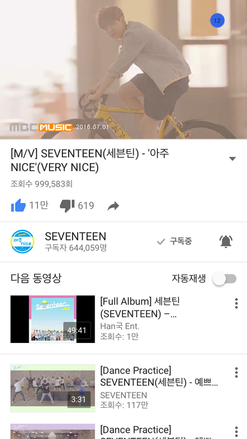 우리 셉틴계정 뮤비99만 넘었어!!! 24시간도안댕는데ㅜㅜ