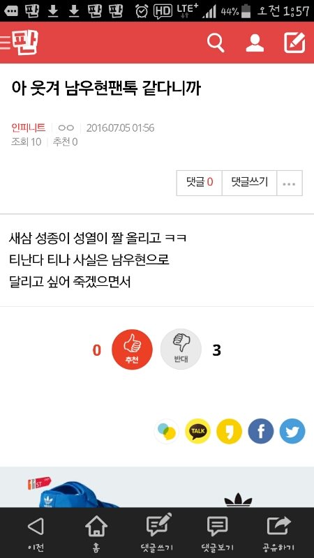 아 웃겨 남우현팬톡 같다니까