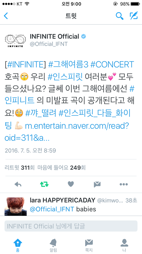 잉피셜도 떴어ㅠ