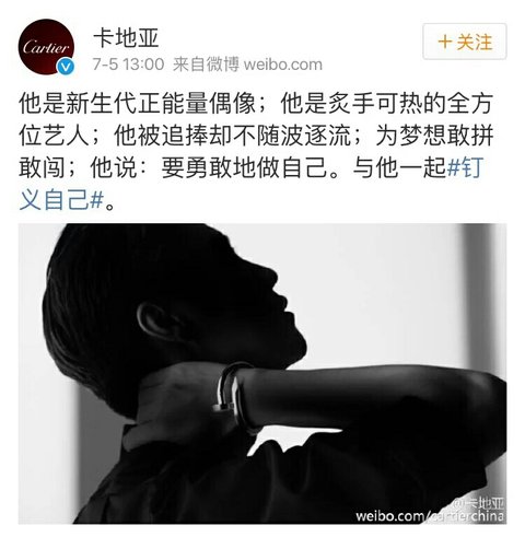 까르띠에 브랜드사상 모델 딱 한명 있었다고... 근데 루한이 두번째 모델로 발탁 그리고 중국 최초모델이라고 까르띠에 공식 계정으로 정식 홍보한 최초 모델이라함 ㄷㄷ