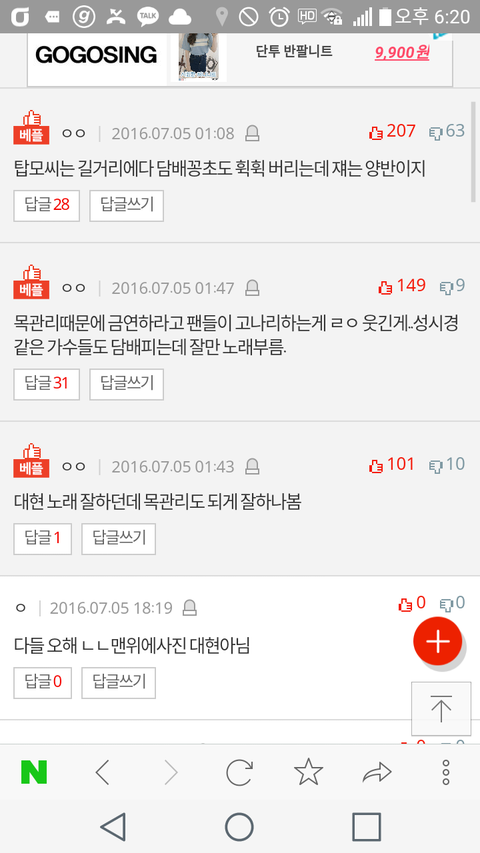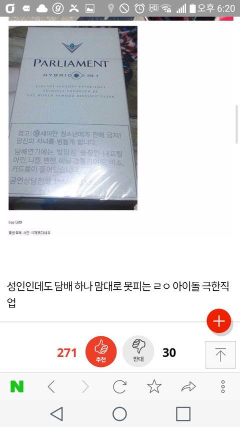 네이트판에담배피는아이돌에대현이나와서욕엄청먹을줄알고조마조마했는데예상외의댓글있어서놀람