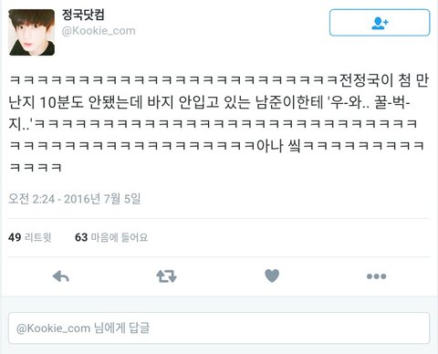 호석이가 정국이 머리자른거 보고 서울에 갓 상경한 애 같다고 했던부분에서 말했었음