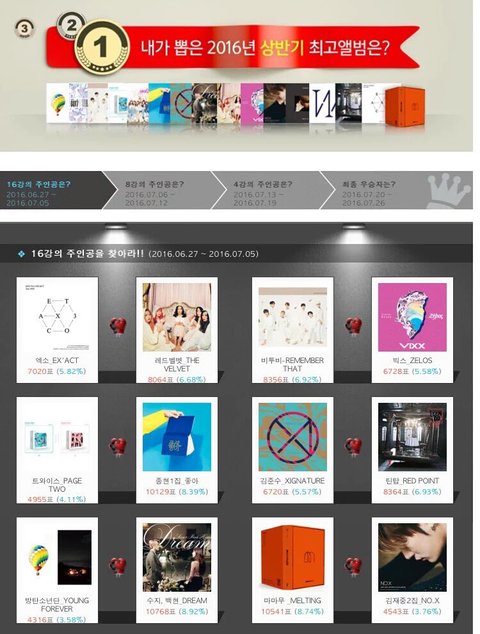 투표해; 우리 red뷀뷋한테 지고 있음ㅋㅋㅋㅋ 후배 걸그룹한테 지면 뭐가 되냐 걍 ㅈ밥 되는 거임 ㄷㅅ들아ㅋㅋㅋㅋㅋ 참고로 저거 무슨 최고 앨범? 뽑는 거임