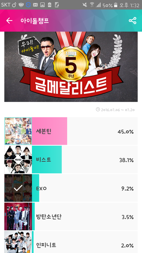 투표해 애들한테 메달 전달해준다잖아; 우리 퍼센트 좀 봐 ㅋㅋㅋ