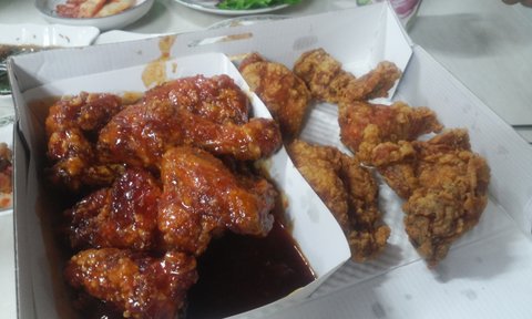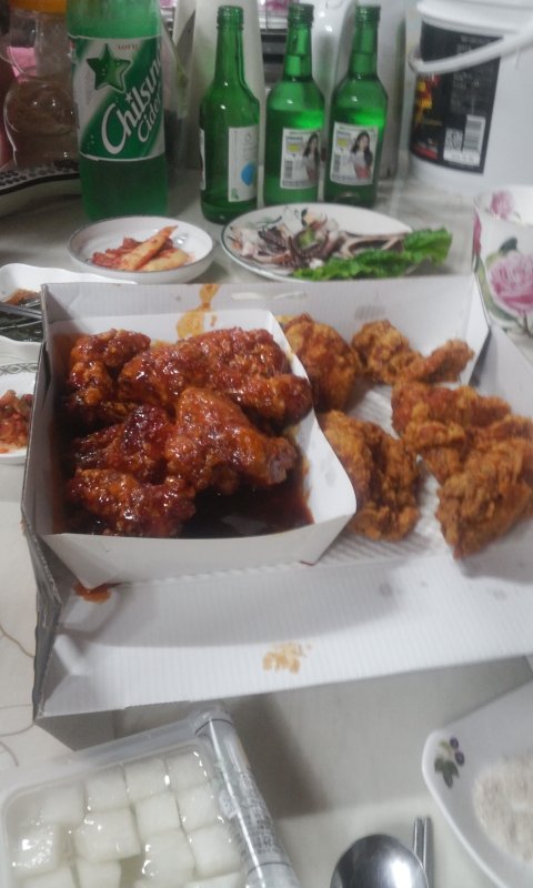 후라이드는 열자마자 하나씩 집어먹은 상태 ㅋㅋ