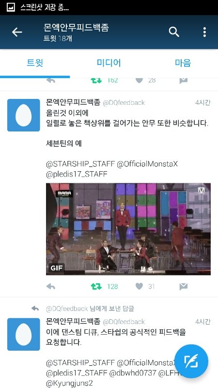 이런 캡쳐본 들고 와서 죄송합니만 저번에 책상 안무 피드백을 요청했다고 들었는데 아직 저흰 피드백을 받지 못한 상황이고 짹에서도 난리입니다ㅠㅠ