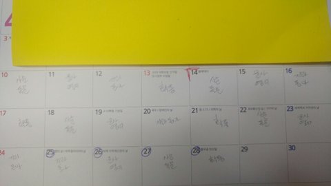 말로는 잘 이해 안갈거같아서 중간고사때 내가 달력해 표시해놨던거 찍었어!ㅎㅎ