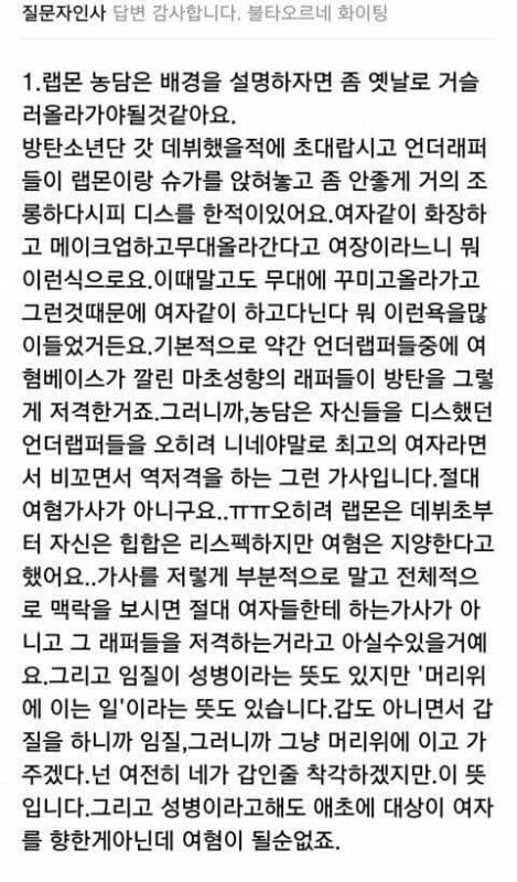 이건 남준이 넝담 정리글 저장해서 필요할때 써. 나도 주웠어