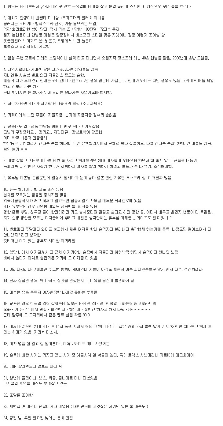 청담동 라운지바에 출몰하는 40대 특징