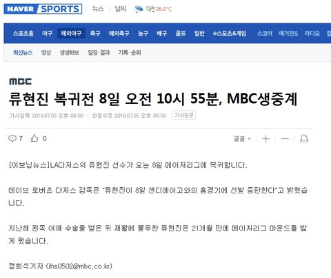 그리고 이번 게임은 정규 편성 제치고 MBC 지상파에서도 특별 생중계 한다고 합니다. 진짜 옛날에 학교에서 박찬호 선수 게임 보기도 했었는데^^
