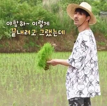 이제는 농사까지 척척 슈퍼콤마비 티셔츠 입고