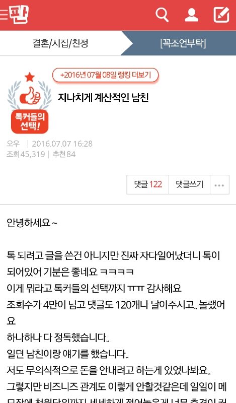 근데 남친이 이러니까 저도 덩달아 계산적이게 되는것 같아요 ㅠㅠ 깊이 생각해봐야겠어요..