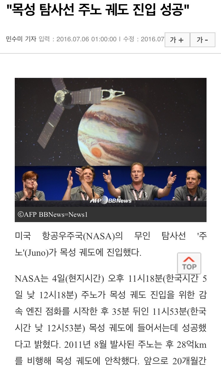 목성탐사선 주노 궤도 진입 성공