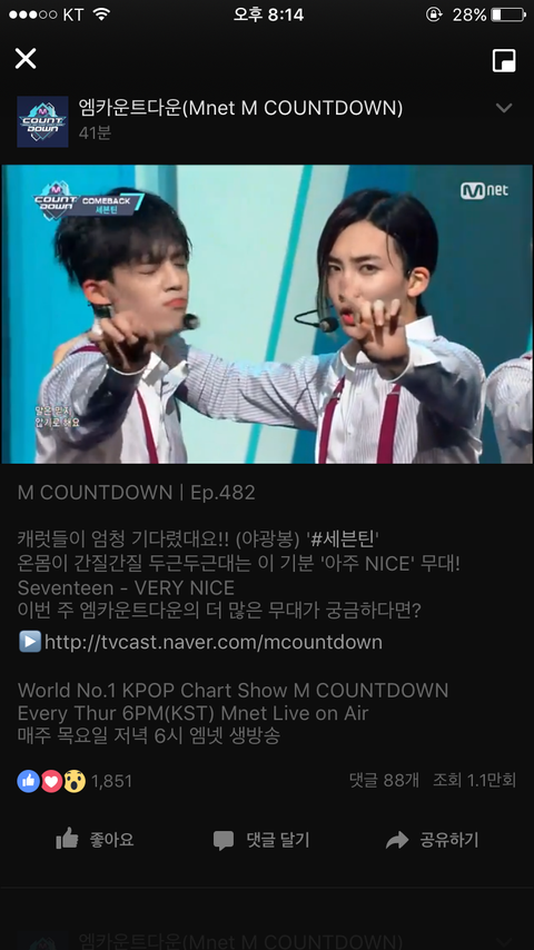 왼쪽에 있는 애!! 내 스타일이야...❤️❤️ 세븐틴 애들 다 잘생겼구 귀엽더라!! 글고 세븐틴 이번 신곡 노래 좋아! 흥했음 좋겠다 ❤️❤️
