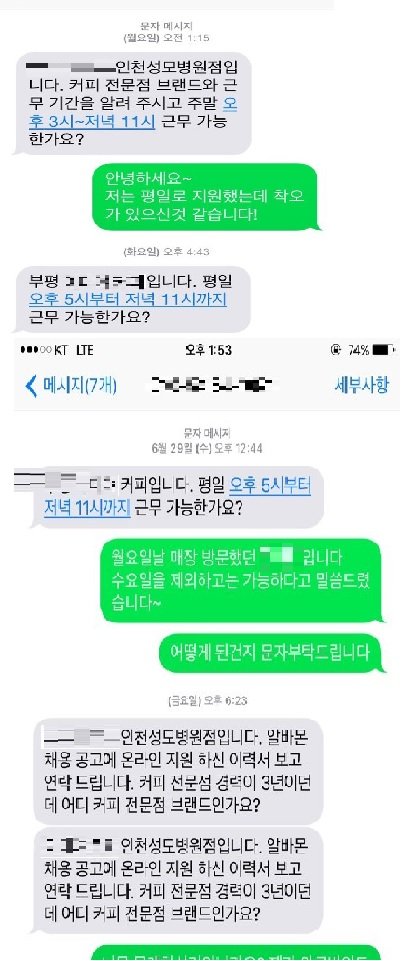 인천성모병원 이** 커피에 이력서를 냈습니다...