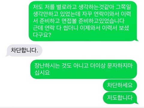 내가 문자 보냈을때 서로 그냥 차단하고 끝났으면 좋잖아