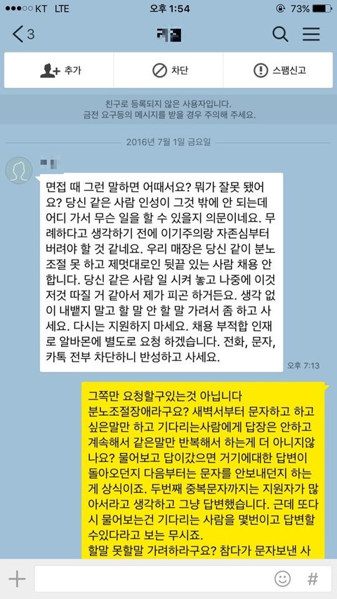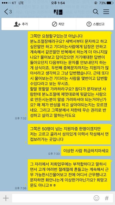 그래서 위에처럼 문자보내고 차단한다길래 나도 차단하고 끝인줄알았습니다. 알바몬에 글올릴생각도 못했구요.