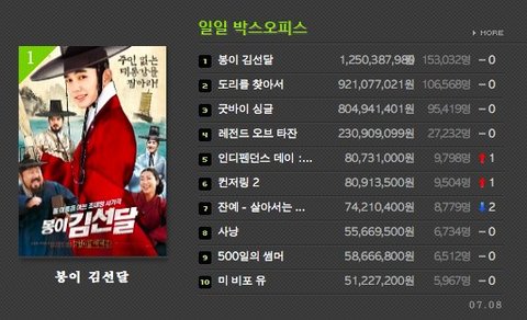 봉이김선달 3일째 박스오피스1위!(시우민)