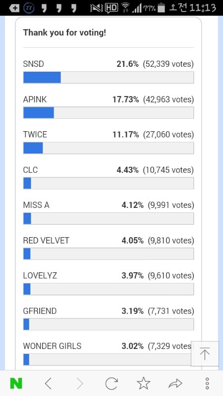 네이ver를 보다가 인기 많은 여자 아이돌투표가 있더라고 레드벨벳이 1등했으면 하는 맘에 올렸어
