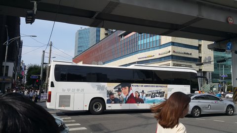 옆이라 보이지 않는건데 앞에 무대인사중 이라고